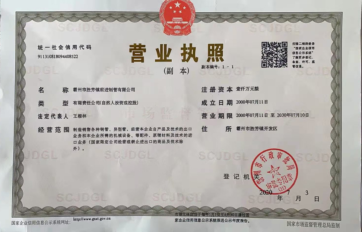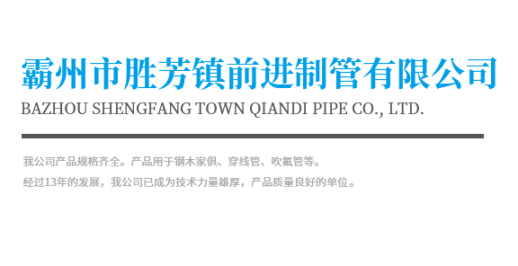 Bazhou Shengfang Town Qiandi Pipe Co., Ltd. 霸州市勝芳鎮前進制管有限公司位于河北霸州市勝芳鎮開發區,地處京、津、保三大城市中心地帶。北距北京120公里,東距天津45公里,西有京九鐵路,北有津保高速公路貫通。規格齊全,檢測完備